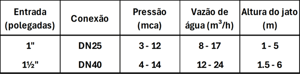 Se a ideia é chamar atenção, o Bico Vulcão é a escolha certa. Ele dispara a água de forma intensa e encorpada para cima, simulando uma pequena erupção. É um efeito forte, de presença marcante, ideal para fontes centrais em espaços abertos ou grandes espelhos d’água. O impacto visual é imediato, e o som da água em queda ajuda a criar uma atmosfera viva e pulsante.