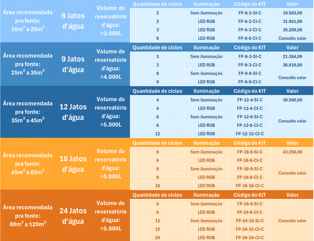 Soluções prontas para quem busca praticidade e eficiência. Nossos kits incluem todos os componentes essenciais para você realizar projetos de fontes recreativas com segurança, economia e alto padrão estético.