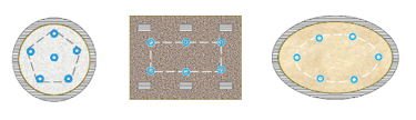 Conjuntos de equipamentos para Fonte Recreativa de Piso Cíclica com 12 jatos d’água em 4 ciclos. Inclui Filtro dosador de cloro e Quadro de Comando e Proteção Elétrica.