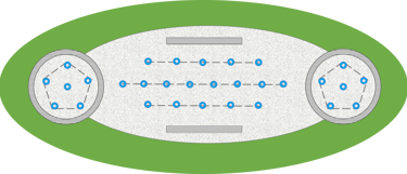 Conjunto de equipamentos para Fonte Recreativa de Piso Cíclica com 9 jatos d’agua em 3 ciclos. Inclui Filtro dosador de cloro e Quadro de Comando e Proteção Elétrica.